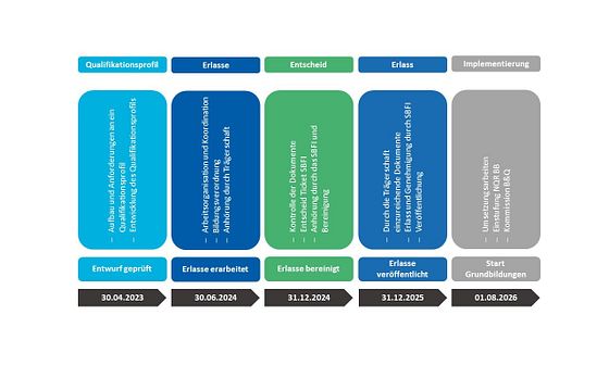 Der Ticketantrag auf Totalrevision wurde beim SBFI eingereicht. Zusammen mit dem Ticketantrag wurden die Bildungserlasse bestehend aus Bildungsplan und Bildungsverordnung sowie das Informations- und Ausbildungskonzept (IAK) für Berufsbildungsverantwortliche zur Prüfung beim SBFI eingereicht. Aufgrund der zugestellten Dokumente führt das SBFI im Zeitraum Oktober bis Dezember 2024 die öffentliche Anhörung bei den Kantonen und weiteren interessierten Kreisen durch. Die Bildungserlasse sowie das Informations- und Ausbildungskonzept werden auf der SBFI Homepage der Öffentlichkeit zugänglich gemacht. Während der Anhörung können zu den Bildungserlassen Stellungnahmen an das SBFI eingereicht werden.