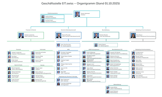 Dank der Vielzahl der Mitarbeitenden mit Branchenkenntnissen (Elektroinstallateure EFZ, Elektrotechniker HF, Elektroplanerinnen, Projektleiter, dipl. Elektroinstallateure, etc.) und der für die Verbandstätigkeit qualifizierten Mitarbeitenden verfügt die Geschäftsstelle über die notwendige Fachkompetenz, um die anstehenden Aufgaben professionell abzuwickeln. Dabei kann die Geschäftsstelle auch auf die Unterstützung der im Milizsystem organisierten Fachgruppen und Kommissionen zählen.