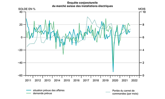 Fin octobre, l’évaluation de la marche des affaires et de la demande était positive et elle se situe dans le cadre des tendances à long terme. Toutefois, les dernières restrictions légales au niveau fédéral et des cantons ne sont pas encore incluses dans cette évaluation. Elles sont susceptibles d’avoir un impact négatif sur l’estimation des entreprises.