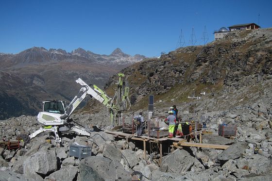 L’installation d’une station de mesure en haute montagne est complexe sur le plan logistique et coûteuse. Un trou d’une profondeur entre 20 et 100 mètres doit être percé. En même temps, aucune eau et aucune contamination ne doivent pénétrer dans le trou.