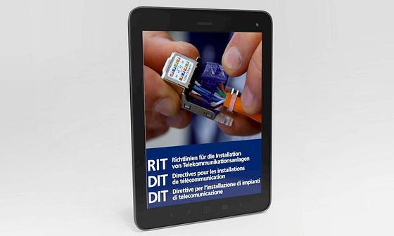 Les directives pour les installations de télécommunication DIT définissent une qualité uniforme du câblage des bâtiments. Elles contribuent ainsi à des installations sûres d'un haut niveau de qualité. Cet article ne peut être utilisé qu'avec l'appli EIT.swiss (iOS / Android) ou un navigateur Web (E-Book). Le contenu ne peut pas être imprimé ni être converti dans un autre format (par ex. PDF).