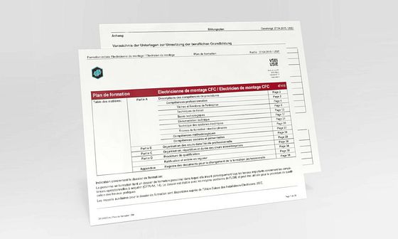 Le plan de formation d'électricienne de montage / électricien de montage contient les détails de la formation initiale. Il comporte entre autres les contenus de la formation initiale ainsi que les dispositions relatives à la sécurité au travail, à la protection de la santé et à la protection de l'environnement.