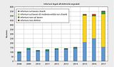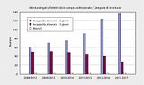 Negli ultimi anni il numero degli infortuni legati all’elettricità è cresciuto dal punto di vista statistico poiché Suva e terzi hanno segnalato all’ESTI un numero crescente anche di infortuni lievi. Gli infortuni gravi e i casi mortali in ambito professionale sono in calo (figura 2). Si verificano per lo più infortuni nel settore della bassa tensione a carico di elettricisti. In ambito privato, nel 2017 hanno dovuto essere indagati 8 (0) infortuni con esito mortale. Questo numero piuttosto elevato comprende 2 casi con 2 vittime ciascuno e 3 suicidi. Un caso di decesso è da ricondurre a un apparecchio elettrico difettoso. Ciò può pertanto essere considerato un valore statistico aberrante. Mentre la quota degli infortuni nel settore della bassa tensione è salita costantemente, la quota degli infortuni nel settore dell’alta tensione si è ulteriormente stabilizzata su un livello relativamente basso. Gli infortuni avvengono principalmente in caso di lavori a impianti di produzione e di distribuzione, a impianti a bassa tensione e presso gli utilizzatori. Da osservare un aumento sopra la media degli infortuni nel gruppo d’età al di sotto dei 40 anni. La maggioranza degli infortunati è o non formato o ancora in formazione. Per quanto attiene alle conseguenze, la quota degli infortuni con passaggio di corrente è in aumento, mentre quella tramite archi elettrici è leggermente in calo.