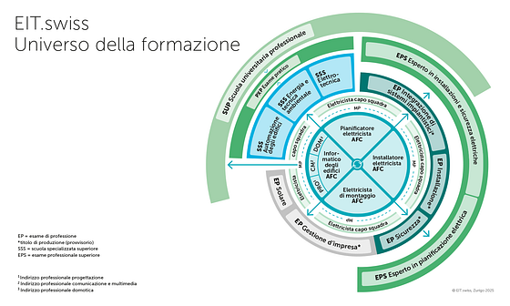 Nel 2017 EIT.swiss ha introdotto un nuovo sistema formativo. Il nuovo concetto di formazione professionale è stato sviluppato in collaborazione con l'Ispettorato federale degli impianti a corrente forte (ESTI), l'Associazione Svizzera per i Controlli di impianti elettrici (ASCE), l'Unione Svizzera degli Studi Consulenti d’Ingegneria (USIC), la Gebäude Netzwerk Initiative (GNI), l'Associazione svizzera e del Liechtenstein della tecnica della costruzione (suissetec) e la Interessengemeinschaft Weiterbildung Elektro (IG-Elektro). Si basa sul regolamento precedente e comprende tre esami di professione e due esami professionali superiori.
