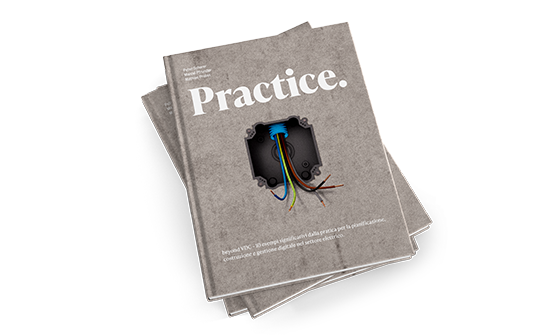 Manuale di riferimento “Practice.” con dieci progetti pratici, attuali e molto avvincenti per la pianificazione, costruzione e gestione digitale nel settore elettrico. contiene variegate esperienze di imprese svizzere affermat.